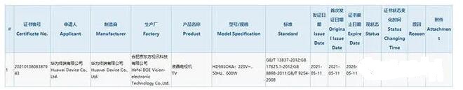 實(shí)際上,在國(guó)家3C重量認(rèn)證官方,目前已經(jīng)有一款型號(hào)為HD98SOKA產(chǎn)品通過(guò)了相關(guān)認(rèn)證。參考此前智慧屏V85的型號(hào)HD85THAA命名方式,這款HD98SOKA或許就是最 新的98英寸智慧屏了。認(rèn)證信息顯示,新機(jī)將由合肥京東方生產(chǎn)。