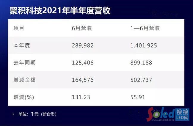 據(jù)報(bào)道,聚積6月營(yíng)收2.9億元(折合人民幣6734萬(wàn)元),月增6%,年增131.23%,整體第2季營(yíng)收達(dá)8.26億元(折合人民幣1.91億元),創(chuàng)下歷史單季次高水準(zhǔn),1-6月營(yíng)收14.02億元(折合人民幣3.24億元),較去年同期上漲55.91%。