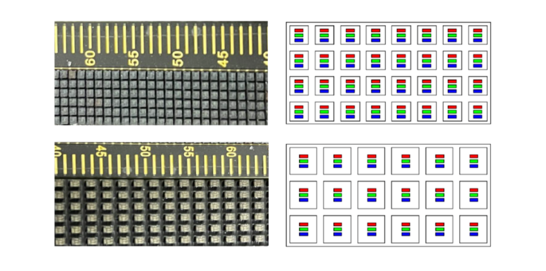 Mini LED點間距是0.1mm-1.0mm,因此也可作為Micro LED的前哨站,目前Mini LED封裝目前包括COB技術(shù)和IMD集合封裝技術(shù)兩種方案,這兩種封裝方式也存在各自缺點,如:成本高、良率低、色塊嚴重、顯示效果不理想、墨色一致性差等一系列問題,現(xiàn)有傳統(tǒng)SMD器件有著先天優(yōu)勢去彌補以上不足,隨著封裝技術(shù)的提升,SMD封裝模式可以往更小的點間距進行突破,從而開始打破SMD單燈封裝不被Mini LED點間距所用的格局。