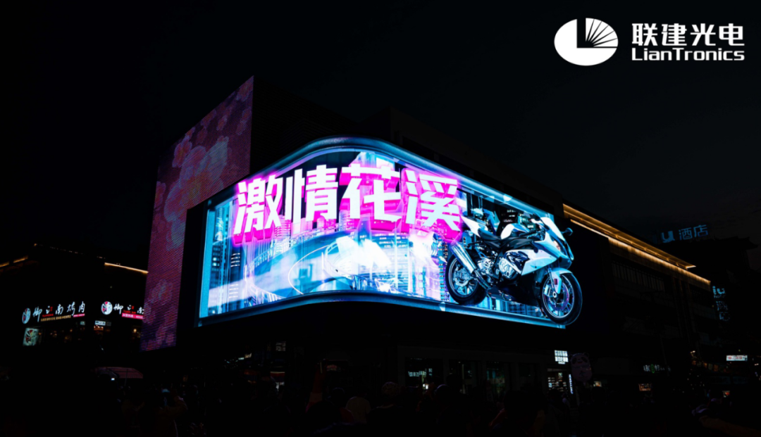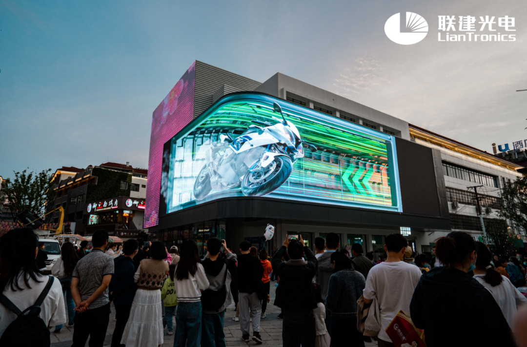 聯(lián)建光電為其打造的裸眼3D巨幕點間距為P4,總面積達(dá)306㎡,分辨率高達(dá)99601920,并使用聯(lián)建光電弧形轉(zhuǎn)角專利技術(shù),使屏幕轉(zhuǎn)角完全適應(yīng)建筑結(jié)構(gòu),出色實現(xiàn)了屏幕平滑、無縫無割裂的安裝效果;超高對比吸光面罩技術(shù)、戶外高亮廣角顯示等先進(jìn)技術(shù)運用,也讓白天或是黑夜不同場景的多元化細(xì)節(jié)完美呈現(xiàn);實現(xiàn)引人入勝、身臨其境的視覺效果。