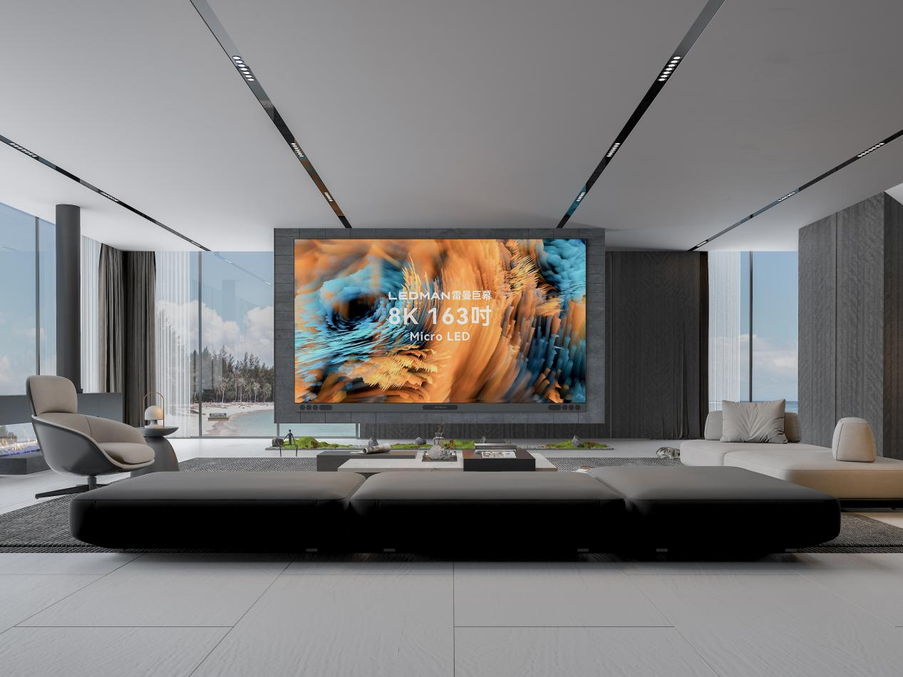 要打造這樣的巨幕并非易事,涉及到一系列技術(shù)難題。作為雷曼全球首臺8K 163吋超高清Micro LED巨幕,采用了自主研發(fā)的COB封裝技術(shù),使用了超過100項(xiàng)雷曼的自主LED專利。在這些技術(shù)的支撐下其分辨率可以達(dá)到7680×4320像素,屬于8k超高清分辨率級別,由于是Micro LED巨幕,我們可以看到這款產(chǎn)品亮度、分辨率、色域、防藍(lán)光、反應(yīng)速度和使用壽命上均有卓越的表現(xiàn),無需吊機(jī)和拆門就可輕松入戶。而且因?yàn)槭亲园l(fā)光其屏占比相比其他顯示器更高,定制型產(chǎn)品可以做到屏占比達(dá)99%,外觀及顯示效果都更為驚艷。除此之外,雷曼還在里面內(nèi)置了性能強(qiáng)大的智能內(nèi)核,它和8K Micro LED顯示屏強(qiáng)強(qiáng)聯(lián)手,可以呈現(xiàn)出更加完美的顯示效果,帶來極佳的視覺沖擊力及豐富的交互體驗(yàn)。