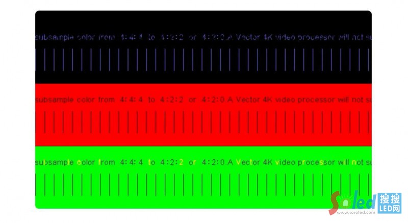 標(biāo)準(zhǔn)的深壓縮算法的壓縮比可達(dá)50-300倍,高壓縮比帶來的必定是畫質(zhì)的損失,傳統(tǒng)分布式通常僅支持8bit 4:2:0處理,導(dǎo)致整體分布式系統(tǒng)的色彩表現(xiàn)力不足,特別在文字圖像和不同的底色情況下,對(duì)于顯示效果的影響尤為明顯。