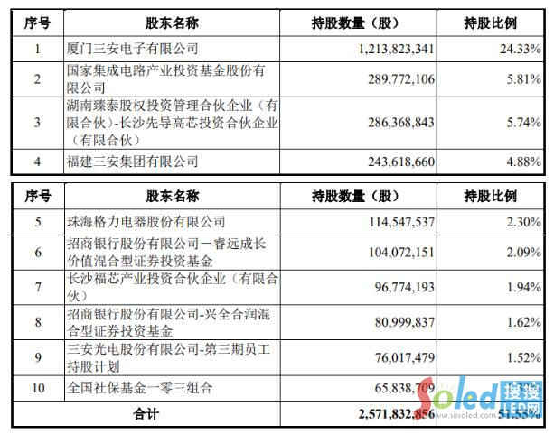 本次發(fā)行后,三安光電前十大股東具體情況如下: