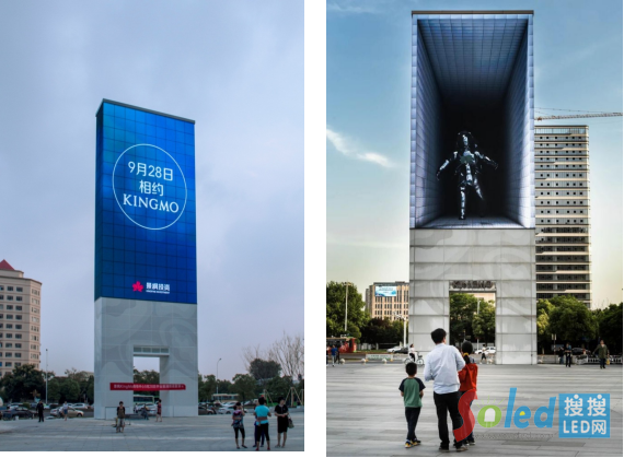 公共藝術(shù)雕塑“DATA GATE”(左圖為方案效果圖,右圖為實(shí)拍圖)