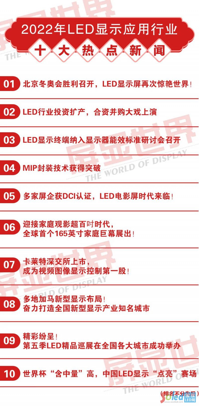 流光溢彩的LED地屏,面積超過1萬平方米,是目前最大的8K超高清地面顯示系統(tǒng);唯美浪漫的冰立方,重約400噸,構(gòu)成了世界最大的五面體裸眼3D顯示裝置;璀璨閃耀的“雪花”形主火炬臺,直徑15米,由96塊小雪花形態(tài)和6塊橄欖枝形態(tài)的LED雙面屏組成;還有高達(dá)60米、壯麗奇?zhèn)サ谋俨,以及厚度僅35厘米、晶瑩剔透的的冰五環(huán)……這些絢爛多彩的視覺科技給全世界的觀眾帶來無與倫比的“視聽享受”。而這場精彩紛呈“視覺盛宴”的背后,則是京東方、利亞德、洲明、雷曼光電、阿爾泰、洛普、諾瓦科技、晶臺光電、集創(chuàng)北方等本土巨頭用LED屏成功“主導(dǎo)”的功勞。
