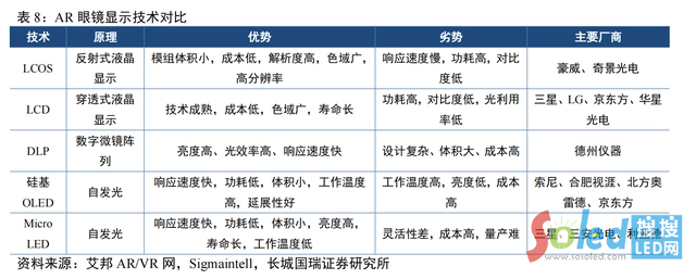 所謂微顯示器,通常指對角線尺寸小于1英寸的顯示器,與常規(guī)的顯示器一樣,其生成的圖像作為光學(xué)系統(tǒng)圖像的來源。長城國瑞證券分析師馬晨認為,Micro LED為AR/VR的終極顯示方案。