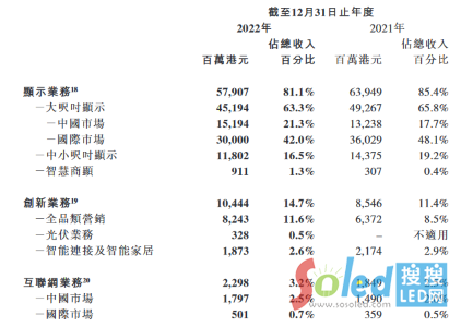 另外,中小尺寸產(chǎn)品2022年實現(xiàn)營收118.02億港元,北美地區(qū)收入同比增長20.2%;智慧商顯業(yè)務(wù)規(guī)模則持續(xù)擴大,營收9.11億港元,同比增幅達196.6%。