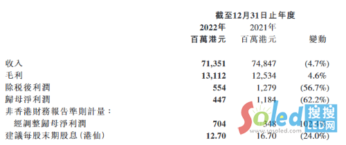 3月10日,TCL電子公布了2022年度業(yè)績。portant;">2022年,TCL電子實現(xiàn)收入713.51億港元(約合人民幣625.05億元),同比下跌4.7%;實現(xiàn)經(jīng)調(diào)整歸母凈利潤為7.04億港元(約合人民幣6.17億港元),同比增長102.4%。