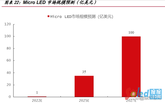 4)Mini/Micro LED:Mini/Micro LED 將帶動 LED 顯示屏進入消費級市場。根 據 IHS 數(shù)據,2021 年全球顯示面板市場規(guī)模 1392 億美元,其中 LCD 規(guī)模為 973 億 美元,OLED 規(guī)模近 400 億美元。未來若 Mini/Micro LED 在顯示屏市場滲透率每提 高 10%,將對應約 140 億美元的新增市場。屆時將是 LED 產業(yè)的真正繁榮。