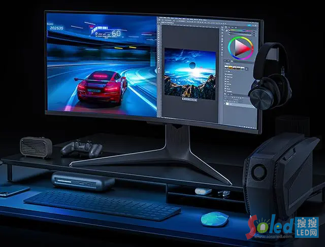 這款新品的屏幕比例為 21:9,通過 KVM 功能可實現(xiàn)一屏多用,一套鍵鼠操控兩臺主機支持畫中畫和分屏。