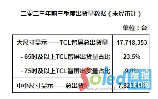 中高端路線及"TCL+雷鳥(niǎo)"雙品牌成果顯現(xiàn),大尺寸智屏出貨量維持雙位數(shù)增長(zhǎng)