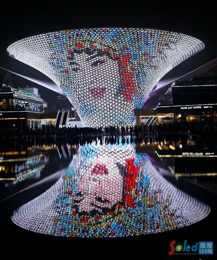 這是通過使用LED燈光技術(shù)演繹的水墨藝術(shù)家朱剛的昆曲系列人物畫作
