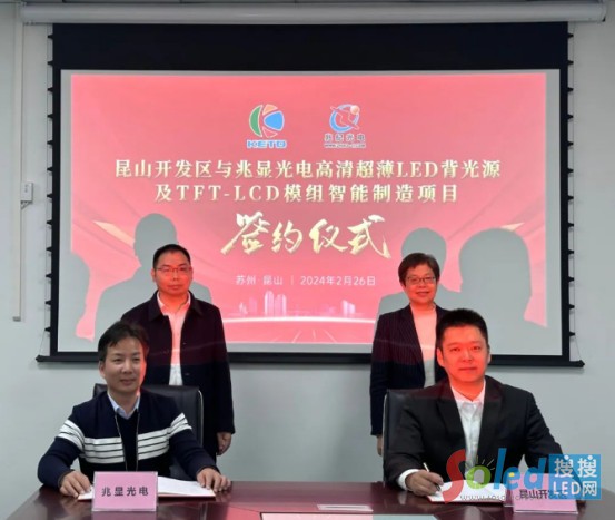 “昆山開(kāi)發(fā)區(qū)發(fā)布”微信公眾號(hào)消息顯示,2月26日晚,江蘇昆山開(kāi)發(fā)區(qū)與深圳市兆紀(jì)光電有限公司(以下簡(jiǎn)稱(chēng)“兆紀(jì)光電”)在深圳成功簽約,兆顯光電高清超薄LED背光源及TFT-LCD 模組智能制造項(xiàng)目落戶(hù)開(kāi)發(fā)區(qū)。