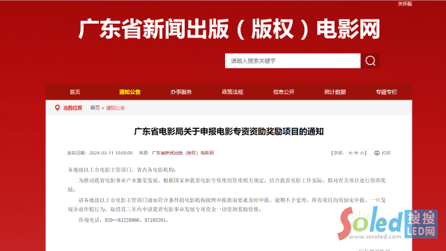 廣東省電影局:資助影院安裝LED屏電影放映系統(tǒng)等設(shè)備