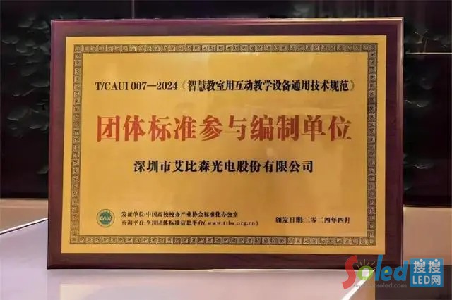 艾比森全程深度參與《智慧教室用互動教學設備通用技術規(guī)范》團體標準的編制,以多年的經驗積累增強標準的適用性和有效性,不僅彰顯了產品與技術的持續(xù)創(chuàng)新能力,也體現(xiàn)了行業(yè)領軍企業(yè)的擔當。在未來,艾比森將進一步凝聚各方力量,總結優(yōu)秀實踐經驗,推動行業(yè)創(chuàng)新發(fā)展。