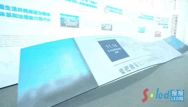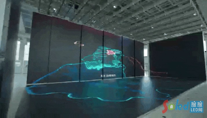 初見微瀾,一塊長達6米的波浪形狀的屏幕靈動地映入眼簾,它以其獨特的形態(tài)和流暢的線條,為空間增添了一抹不可復制的柔美。屏幕上展示的流域綜合治理畫面,更讓人身臨其境。