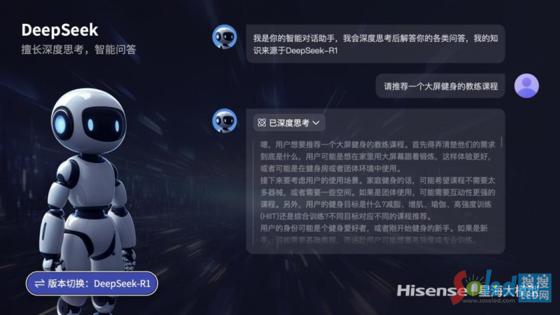 正式接入DeepSeek后,海信電視用戶無需復(fù)雜的操作步驟,使用海信電視遙控器小聚AI鍵或者直接通過語音打開DeepSeek,在對應(yīng)的智能體對話頁面內(nèi),用戶通過語音表達問題即可體驗。加入深度思維引擎的海信AI電視將為用戶帶來全新的智能體驗,能夠像人類一樣對復(fù)雜問題進行層層推理,實現(xiàn)思路清晰、答案精準(zhǔn)的響應(yīng)。海信AI電視還突破了傳統(tǒng)問答框的交互邏輯,讓用戶仿佛置身于全息沙盤之中,實現(xiàn)多層次的信息呈現(xiàn)和沉浸式交互體驗。家庭智慧中樞功能,能讓全家共享“知識外掛屏”。