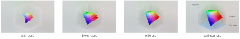OLED、LED與RGB-LED的顏色體積對比