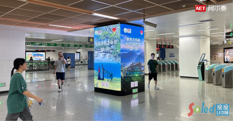 AET阿爾泰為成都地鐵打造LED裸眼3D包柱項目,利用雙屏多屏聯(lián)動技術(shù)使平面圖像“躍出屏幕”與乘客互動,將功能性結(jié)構(gòu)升級為網(wǎng)紅打卡點,給人以撲面而來的科技感和舒適感,讓日常的交通節(jié)點,生長為滋養(yǎng)人民美好精神的沉浸式載體。