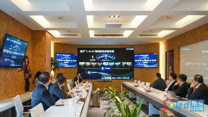 簽約儀式后,此次辰顯光電團(tuán)隊一行參觀了冠捷科技全屏展廳。展廳通過商用、辦公、醫(yī)療、教育、交通、電競等多場景的呈現(xiàn),全面展示了冠捷科技旗下的智慧商顯、顯示器、電視、音視頻等全品類視訊生態(tài)體系,讓辰顯光電一行切實感受到冠捷科技高標(biāo)準(zhǔn)的視訊服務(wù)和深厚的技術(shù)積淀。