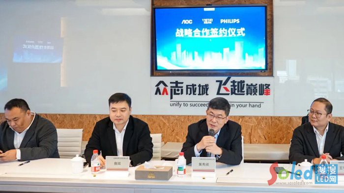11月5日,冠捷科技集團(tuán)旗下飛利浦商用顯示、AOC商顯與成都辰顯光電在上海冠捷大廈正式簽署戰(zhàn)略合作協(xié)議。各方將圍繞TFT基Micro-LED顯示技術(shù),從技術(shù)路線、產(chǎn)品規(guī)劃到多場景應(yīng)用展開深度協(xié)作,共同打造新一代顯示技術(shù)產(chǎn)業(yè)生態(tài),推動Micro-LED加速商業(yè)化。