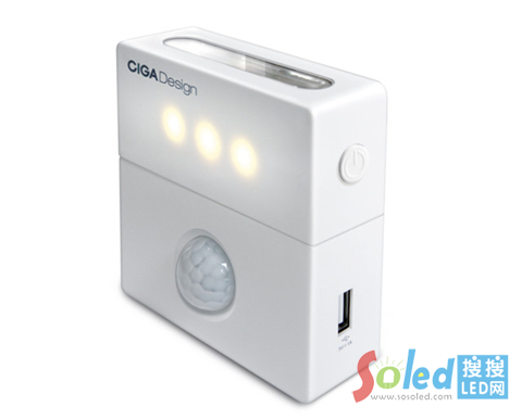 暗夜精靈是一個多功能的感應燈,可作為小夜燈、應急燈和充電手電筒以及一個USB充電適配器。只要有人進七米半徑范圍內,夜間燈光會自動開啟。如遇停電,燈可以提供多達四個小時光亮。該產品由兩個可分離的部件組成,其中的一個可作為移動手電。