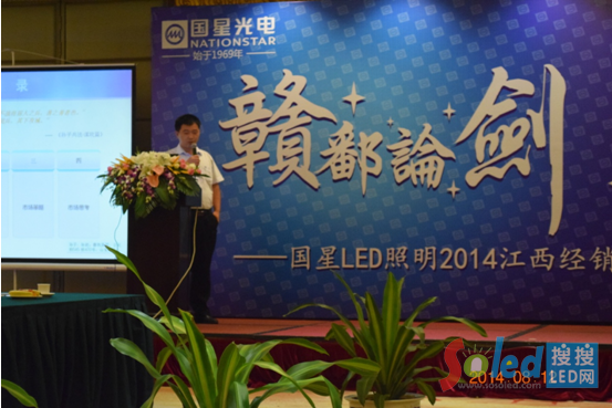 2014年8月12日,恰逢國(guó)星LED照明江西運(yùn)營(yíng)中心成立一周年之際,國(guó)星光電以“贛鄱論劍,眾星璀璨”為主題的江西經(jīng)銷(xiāo)商大會(huì)暨新品發(fā)布會(huì)在江西南昌凱萊大飯店隆重召開(kāi)。國(guó)星光電照明事業(yè)部總經(jīng)理徐振鋒攜照明事業(yè)部副總經(jīng)理、照明研發(fā)部主任劉宗源博士、華中華北大區(qū)經(jīng)理張璐、國(guó)星LED照明江西省總代理——天鵬燈飾總經(jīng)理喻小文及江西省80多家經(jīng)銷(xiāo)商出席了此次會(huì)議。