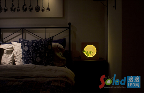 設(shè)計師在滿月燈的內(nèi)側(cè)面設(shè)計了一個可插植物的孔位,使得這個簡潔的夜燈與思鄉(xiāng)的你有了更多的互動。隨手采摘的一枝綠葉,讓清新的綠意盈滿房間。淡淡的夜晚,也充滿暖意,可放在臥室、書房、客廳。