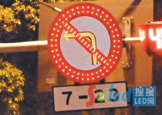 因LED燈直接附著在標(biāo)志上,像“禁止左轉(zhuǎn)”與“分道標(biāo)志”原本的黑箭頭就貼上黃色LED燈,白天看還好,但晚上標(biāo)志內(nèi)的指示箭頭,就會(huì)全部變成黃色,違反設(shè)置規(guī)定。