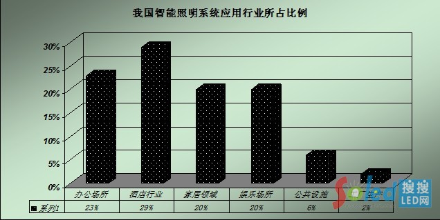 我國智能照明系統(tǒng)應(yīng)用行業(yè)所占比例