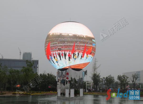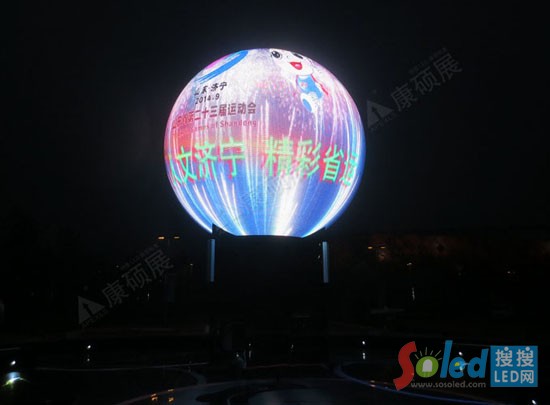 此次山東省第23屆運動會開幕式上康碩展創(chuàng)意LED球形屏——“濟寧眼”,是全世界首款戶外全彩LED球形顯示屏,是康碩展的專利產品,也必將成為康碩展LED創(chuàng)意顯示屏里程碑式的項目,在創(chuàng)意顯示屏的領域里具有重要和積極的意義。