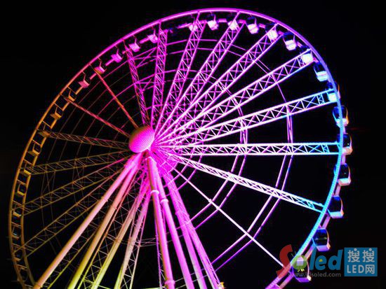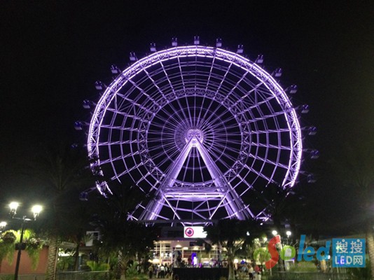 此觀景摩天輪上共安裝了約64000個(gè)LED。照明系統(tǒng)采用了RGB系統(tǒng),提供多種顏色選擇,以適應(yīng)任何特殊的場(chǎng)合或節(jié)日。在未來,具有白色外觀的奧蘭多之眼可產(chǎn)生彩虹般的色彩效果。