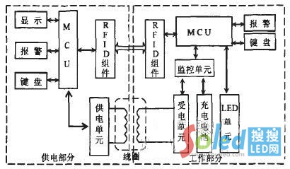 對使用非接觸供電技術(shù)的LED發(fā)光設(shè)備的設(shè)計,要從三個角度考慮完成系統(tǒng)的設(shè)計:一是從器件的選擇、電路設(shè)計上盡可能的提高系統(tǒng)的效率;二是嵌入非接觸式的RFID(Radio Frequency Identification,射頻識別)技術(shù),實現(xiàn)ID認(rèn)證機(jī)制,保證系統(tǒng)的安全;三是采用MCU(Micro Control Unit,微控制器)作核心的部分,產(chǎn)生驅(qū)動電路所需的振蕩頻率,同時也需要控制RFID組件與電能接收端進(jìn)行信息交互。使供電端與用電端可以用一對一、一對多、多對一、多對多和網(wǎng)絡(luò)分布方式供電。
