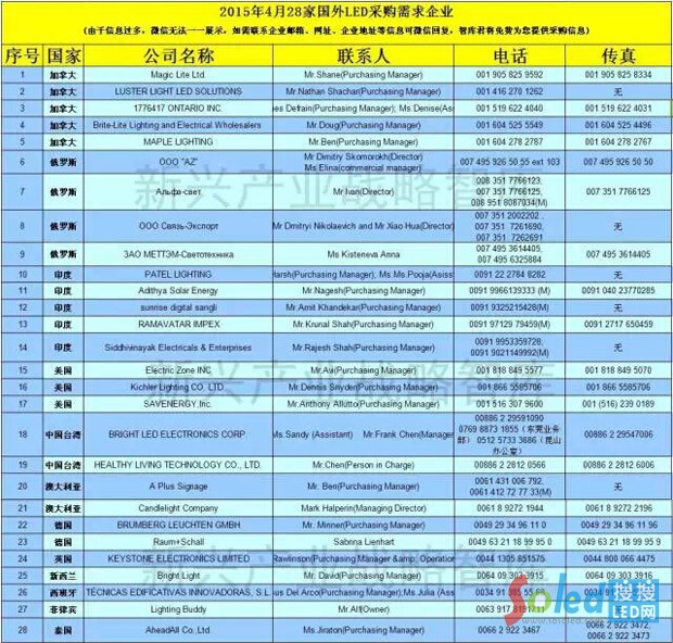 附:海外28家LED采購(gòu)商詳細(xì)聯(lián)系方式