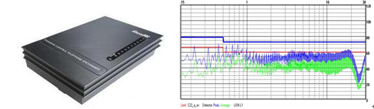 雖然電源自身電磁干擾方面投入了很大的設(shè)計成本,也符合承諾的各項指標要求,但是電源在市場應(yīng)用方面還是難免出現(xiàn)電磁干擾超標的問題;此時,很多的設(shè)計工程師都會認為問題的根源在于電源,這方面的認識其實是有誤區(qū)的,因為電磁干擾傳導騷擾測試項目,主要是針對電源端口的,那么電源端口就成了他的傳輸路逕,所有的電磁干擾都會經(jīng)過電源端口到達被測設(shè)備,但是測試設(shè)備測試到的電磁干擾除了來自電源本身外,主要的部分還包括整機中的其他部分產(chǎn)生的電磁干擾,以及設(shè)備內(nèi)部寄生參數(shù)的諧振產(chǎn)生的電磁干擾,這一類電磁干擾會通過電源端口耦合到測試設(shè)備,電源內(nèi)部的濾波器是無法進行實現(xiàn)對這部分電磁干擾進行濾波,電源應(yīng)用環(huán)境千差萬別,所有電源設(shè)計濾波器部分都是以解決自身的干擾為首要考慮條件的同時,濾波器衰減特性及頻譜特性盡量會預留最大的余量,但不可能兼容所有應(yīng)用場合;那么這就要求我們的整機設(shè)計人員在設(shè)計電源前端時候,一定要按照電源廠家推薦的應(yīng)用電路進行設(shè)計,例如:LH15產(chǎn)品應(yīng)用過程中出現(xiàn)EMI超標問題(見下圖)。