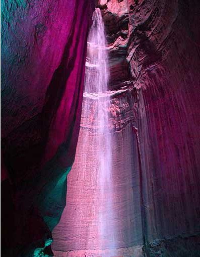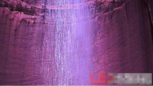 位于美國(guó)田納西州查特怒加市觀景峰地面以下1200英尺(366米)處的紅寶石瀑布是美國(guó)最大最深的地下瀑布之一,水流落差達(dá)145英尺(約44.2米)。在紅寶石瀑布所在的紅寶石巖洞中,充滿了各種奇異的天然巖洞景觀,而現(xiàn)在多彩的LED燈的運(yùn)用則更讓巖洞充滿了奇幻的氛圍,讓人更加感嘆大自然的神奇!當(dāng)不同色彩的LED燈光照向飛流直下的瀑布時(shí),不禁會(huì)讓人感到置身于一個(gè)天外的世界一般。