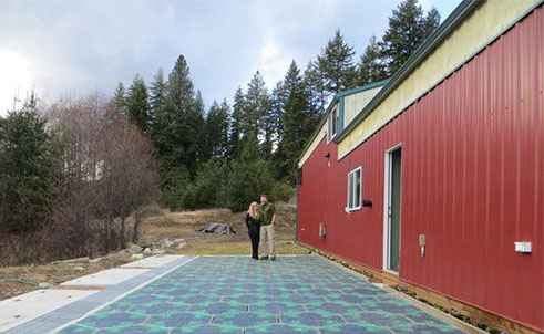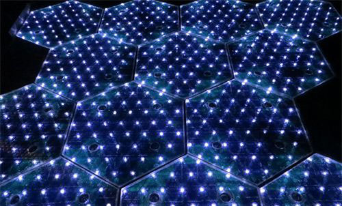 Solar Roadways 開發(fā)出了一個六角形的太陽能發(fā)電模組,可以依照當?shù)氐耐恋卦煨徒M合起來,而且這個模組經(jīng)過了冰雪及耐壓的測試,讓它可以鋪裝在一般家庭的庭院里頭,像目前  Solar Roadways 所進行的測試階段,已經(jīng)把它鋪成露天車庫的地板。